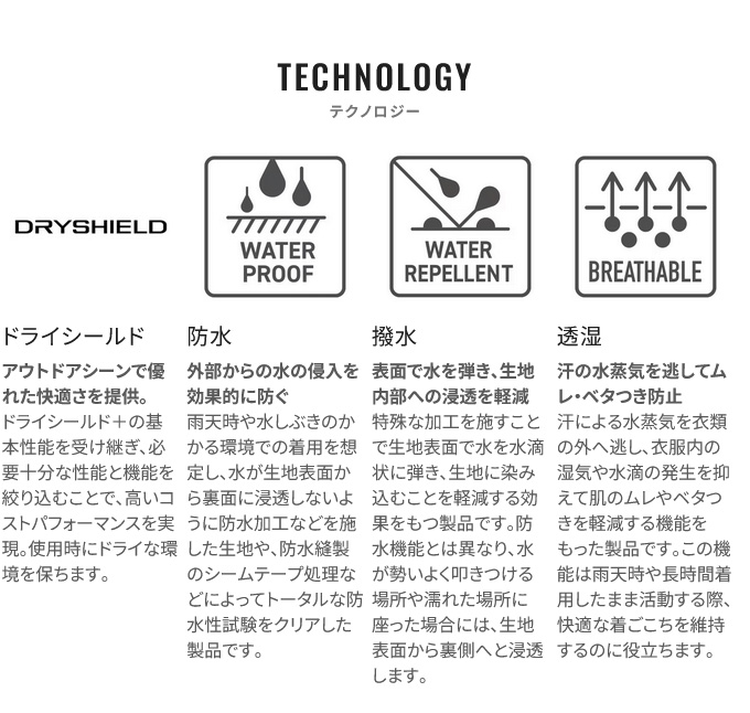 ■シマノ独自のレインウェア防水透湿基準「ドライシールド」