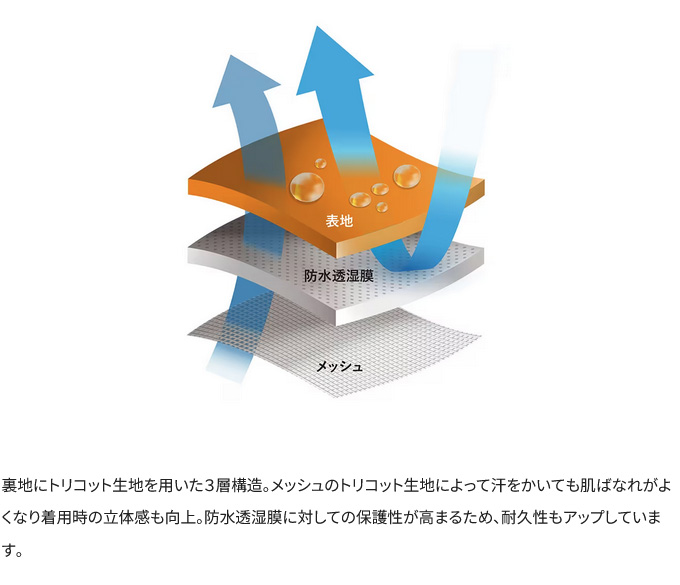 ■肌離れが良いトリコット裏地付きの3層生地