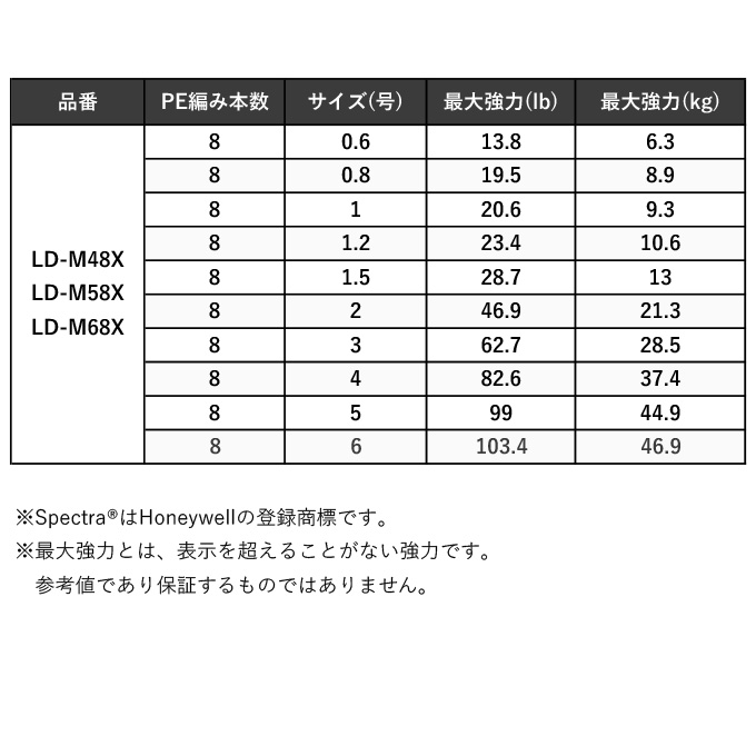 PE素材にHoneywell社のSpectra®を採用。