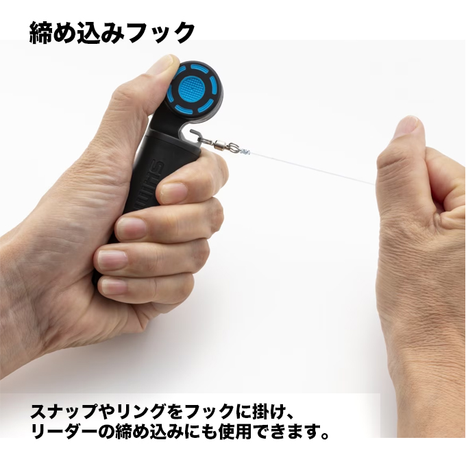 さらに、リーダーにスナップやリングを結ぶ際は、金属フックに引っかけてしっかりと締め込めます。