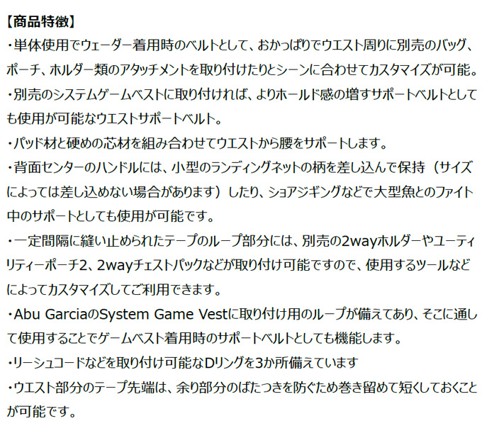 サポートベルト、ゲームベスト、ウェア、ウエア、釣り、フィッシング、アブガルシア、Abu Garcia、ピュアフィッシング