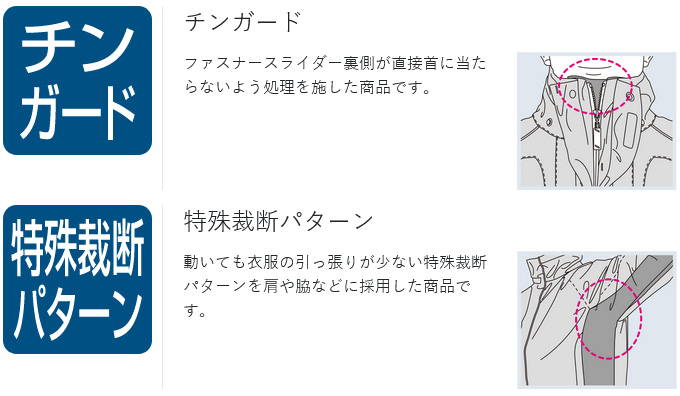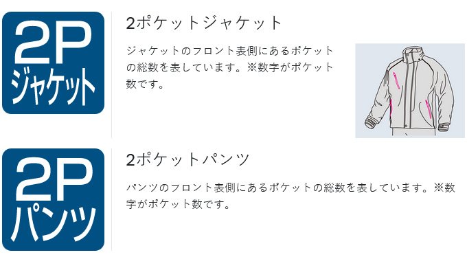 ●ジャケット 、パンツともにファスナー付きポケットを配置。