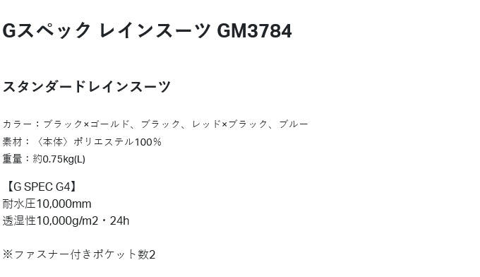【Gスペック レインスーツ GM3784】