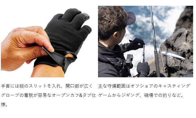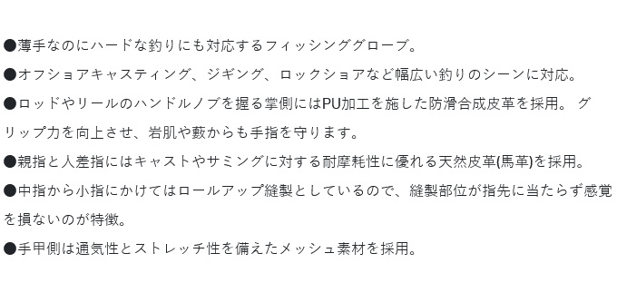 ●薄手なのにハードな釣りにも対応するフィッシンググローブ。