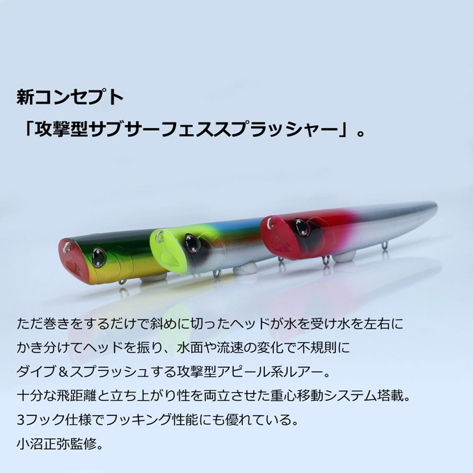 ただ巻きだけで魚を寄せる3Dアクション。新コンセプト「攻撃型サブサーフェススプラッシャー」。