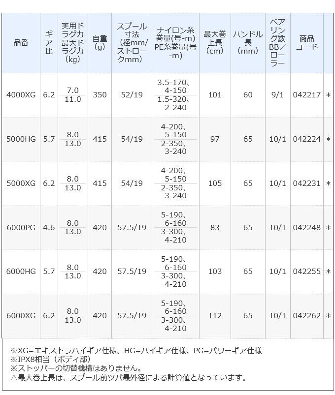 ●ナイロン糸巻量(号-m):4-240、5-190、6-160