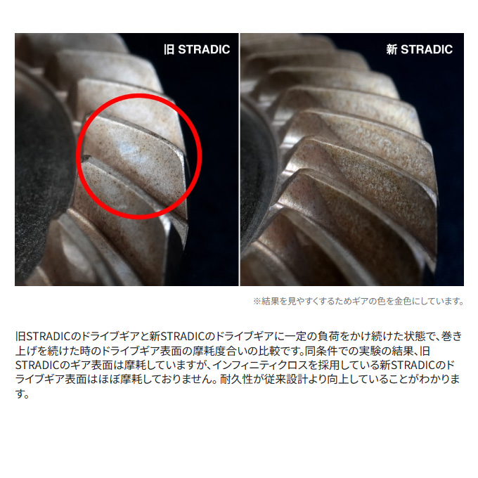 ストラディックがフラッグシップモデルの先進フィーチャーを搭載して、飛躍的な進化を遂げました。ギアの耐久性を大幅に向上させるインフィニティクロス。パワフルな巻き上げを実現するインフィニティドライブにより「巻き」の性能が向上。アンチツイストフィンはライントラブルを抑制し、キャスティングの安心感を高めます。ドラグワッシャーの耐久性を高めたデュラクロスが過酷な状況下でのファイトをサポートします。既存の性能を塗り替えたストラディック。シマノ・スピニングリールの新基準として、ひとつ上の世界を志すアングラーにお届けしたい1台です。