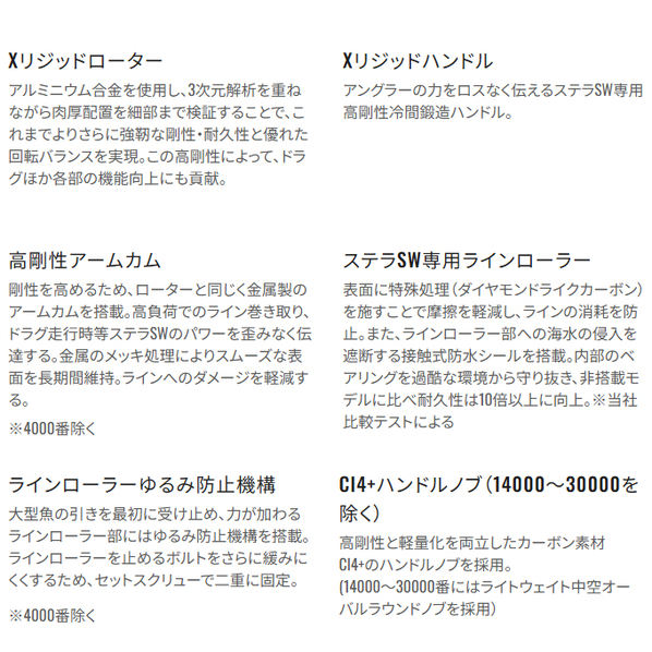 国内外で数多の実績をあげてきたステラSWが数々のテクノロジーとともにモデルチェンジ。XXタフドラグによるドラグ性能の向上、インフィニティループによるキャスタビリティの向上、インフィニティクロスによるギア強度・耐久性の向上、アンチツイストフィンによるライントラブルの防止など、さらなるアドバンテージをプラス。また、ハンドルノブへの防水シールの追加、ドラグノブの大径化など細部に至るまでブラッシュアップ。ソルトウォーターシーンで大物と真っ向から対峙するための性能にさらなる磨きをかけ、新生ステラSWが解き放たれる。