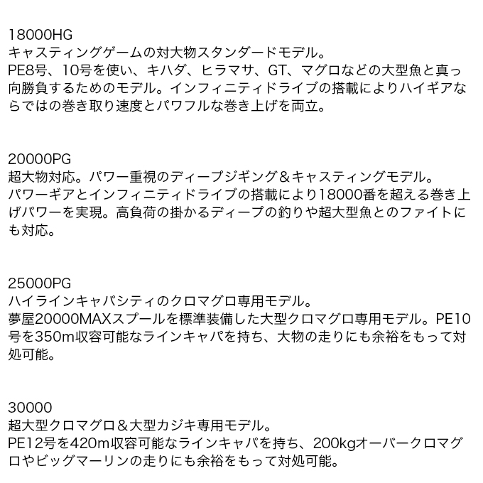 PE12号を420m収容可能なラインキャパを持ち、200kgオーバークロマグロやビッグマーリンの走りにも余裕をもって対処可能。