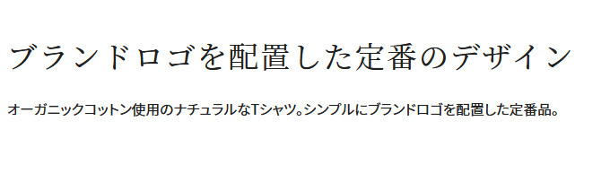 オーガニックコットン使用のナチュラルなTシャツ。シンプルにブランドロゴを配置した定番品。