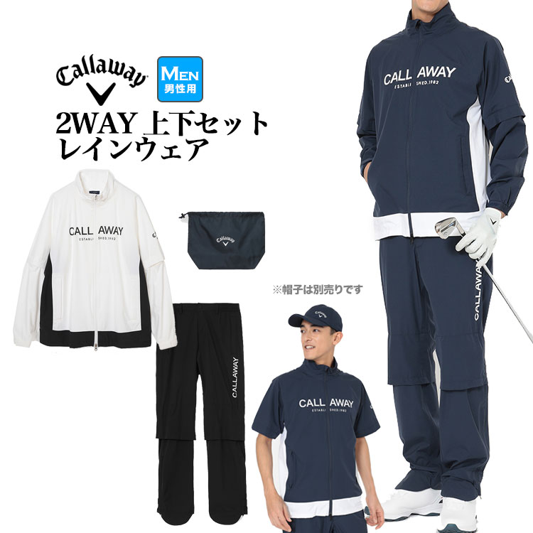 とても柔らかく、耐水圧20,000mm・透湿20,000gの高機能素材を使用したレインウェアです 男性用 2026年 Callaway GOLF キャロウェイ ゴルフ C26989100 セットアップレインウェア [8WAY ストレッチ 2WAY(半袖) パンツ丈調整可能 シューズガード付き](メンズ)