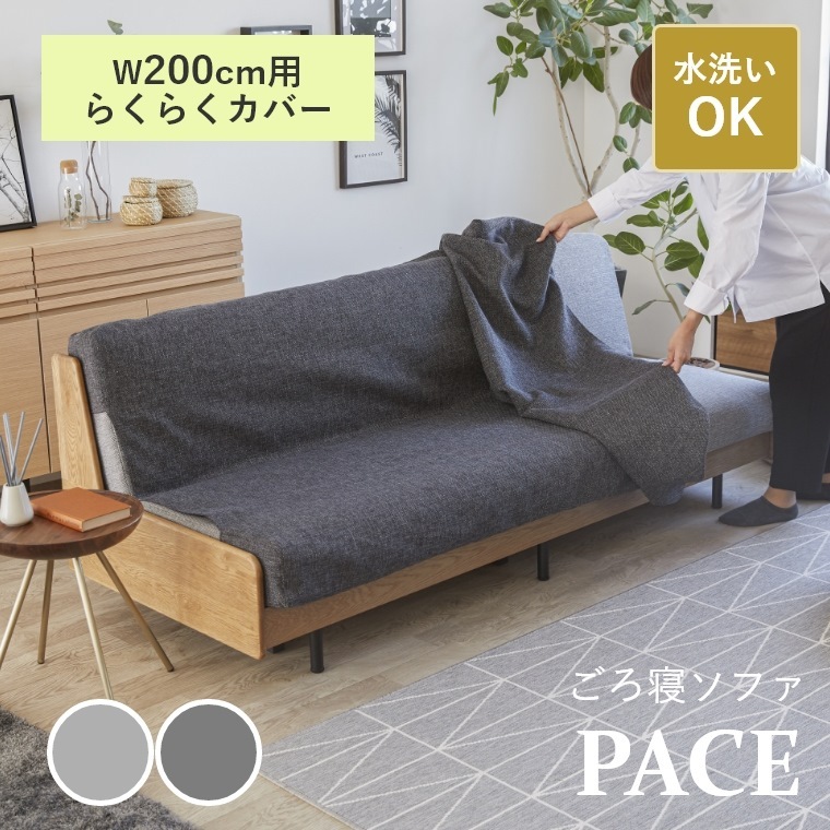 専用カバー単品 ソファ カバー ソファベッド ごろ寝ソファ 洗える PACE ペース らくらくカバー 幅200cm 布 無地 模様替え ヴィンテージ