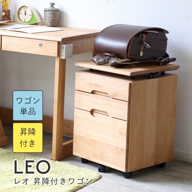 | 木特有の節や木目が目立たないアルダー材を使用したデスクシリーズ LEO レオ 昇降付きワゴン |