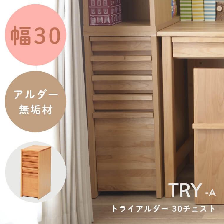 | リビングで親子時間!ナチュラルなデスクシリーズ TRY トライ アルダー 30チェスト |