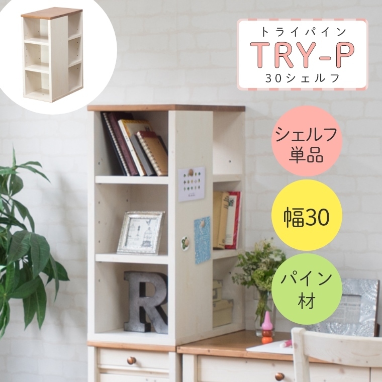 学習机 勉強机 カントリー 穏やかな雰囲気のカントリー風デスク TRY トライパイン 30シェルフ 単品 幅30 高さ72 シェルフ ラック カントリー調