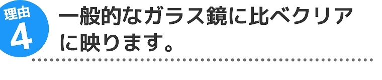 一般的な鏡に映る灯などは、ガラスの厚みがある分、二重に映ってブレてしまいます。また、ガラスを通って反射している為、ガラスの色が混ざっています。