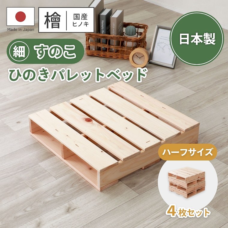 ひのきパレットベッド 細すのこ 通常サイズ(4枚セット) | ひのきパレットベッド 細すのこ ハーフサイズ(4枚セット) |