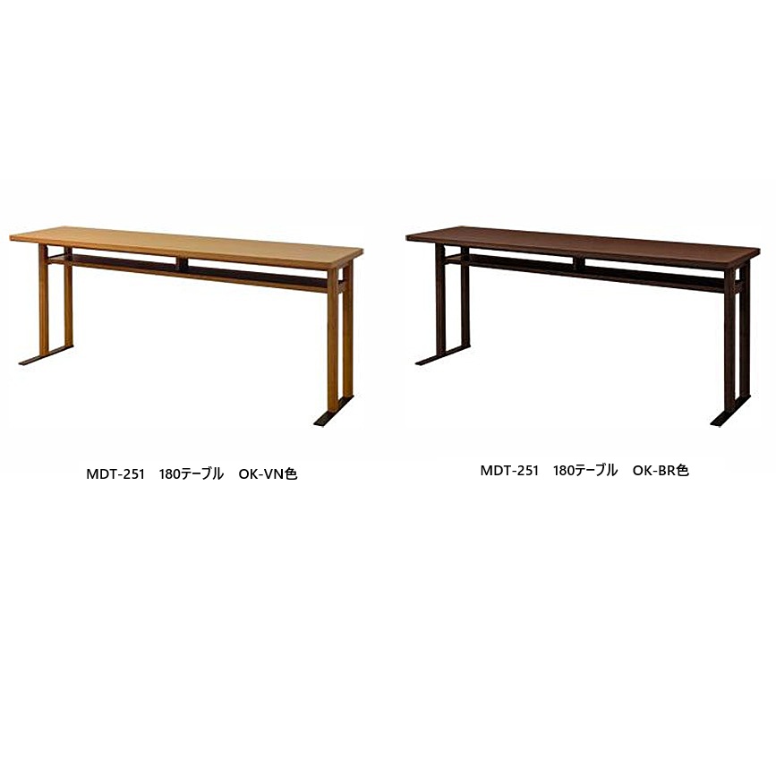 モーブル 180 テーブル MDT-251 木部2色対応:OK-VN・OK-BR 天板:オーク材・オーク突板 すり足用プレート:スチール 送料無料(玄関前配送)