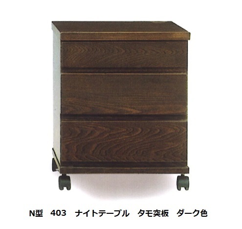 N型 403 ナイトテーブル 材質:タモ材 3色対応(ナチュラル・ブラウン・ダーク)ストッパー付キャスターで移動も楽にできます 送料無料(玄関渡し)北海道・沖縄・離島は除く。要在庫確認。ホルムアルデヒド規制対応商品です。お部屋のサイズに合わせて3色4タイプの中からお選び下さい。