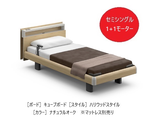 商品説明 | ■従来の電動ベッドと同じように、ボタンを押すだけで背・膝の角度やベッドの高さを調節できるのはもちろん、そのほかに、上体を起こして過ごすのに適したリーディングポジション、背と膝を少し上げた楽な姿勢でゆったりと過ごせるリラックスポジション、ベッドをフラットにするフラットポジションを用意しています。 ■さらに、これら3つのポジションを自分に合った角度にカスタマイズして、リーディング、 リラックス、フラットの各ボタンに登録しておくことが可能です。 ■手元スイッチは、持ちやすさに配慮し、コンパクトに設計。使い勝手に徹底的にこだわりました。シンプルかつ分かりやすいアイコン表示で迷うことなく操作ができます。手元スイッチにはLEDライトも新たに装着しました。 ■用途に合わせて角度を変えられるので、間接照明や補助照明として使うことができます。さらに、手元スイッチを取りつけるためのホルダーに、スマートフォンなどのデバイスが充電できるUSBポートを備えています。 ■脚座(脚部のパーツ)を組みかえることによりベッドの高さを2通りから選べます。高く設定するとロボット掃除機が利用できます。ベッドの高さが気になる場合は6.5cm低くすることができます。 ■オプションのアクセスボックスは、左右どちらかの手が届く位置に配置。日常で必要な小物などを収納できます。ベッドの背あげ動作に追従して動くので、ベッド上にいながら手を伸ばせば、使いたい小物を取り出すことができます。※標準装備には含まれておりません。オプションで別途購入が必要です。 |