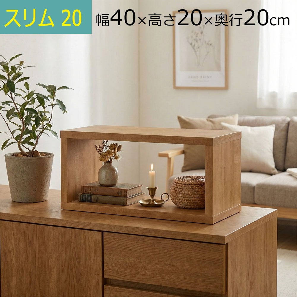 奥行スリムタイプ20cmが新登場!現状のカラーボックスに満足できないあなたへ。収納物にサイズを合わせる新しい提案。サイズは幅40×奥行き20×高さ20cm(約)、本体内寸は天板と底板は板の厚み約1.8cm×2の約3.6cmを引いた数値、側板と側板は約3.9cmを引いた数値となります。色・主材は本体/木目調ブラウン・プリント紙化粧繊維板、生産国 はTHAILAND、重量は約3kg、お客様組み立て商品です。工具は不要ですが、付属のボンドで固定する際、板と板の隙間ができないようしっかりと組み立てをお願いいたします。(連結金具使用時はプラスドライバーが必要)送料無料:(沖縄・離島/別途お見積もり)家具は重量がありますので、配達中などのアクシデントがゼロではありません。その場合は迅速に交換いたします。ディスプレイボックス カラー box カラー ボックス 通販 隙間 収納 家具 シェルフ キューブボックス