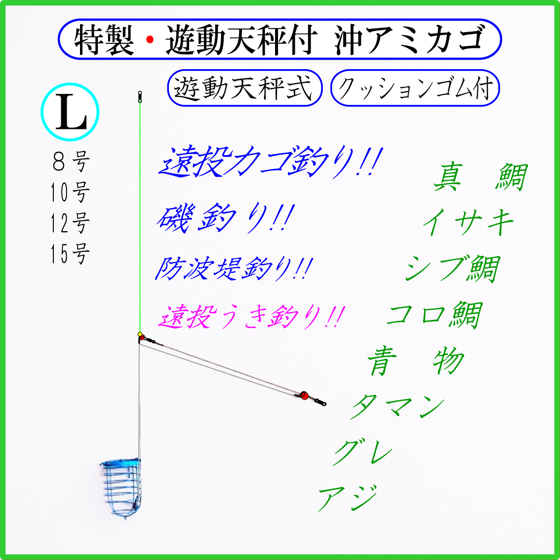 【特製・遊動天秤付 沖アミカゴ L(青)クッションゴム付】遠投カゴ釣り仕掛け 磯 防波堤 コマセカゴ マキエカゴ 真鯛 イサキ シブ鯛 青物 尾長グレ アジ サバ