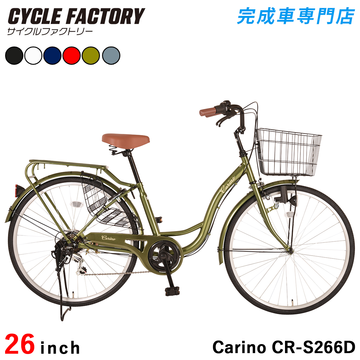 自転車 26インチ 完成品 組立済 ダイナモライト 6段変速 両立スタンド クラス27キャリア シティサイクル 男の子 女子 カリーノ Carino CR-S266D