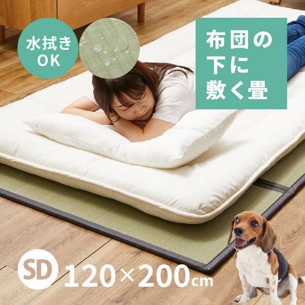 マットレス セミダブル 置き畳 い草風 ビニール風 4つ折り 幅120×長さ200×厚み1.1cm たたみ 畳 ユニット畳 布団 マット 床 水洗いできる ペット 伏見