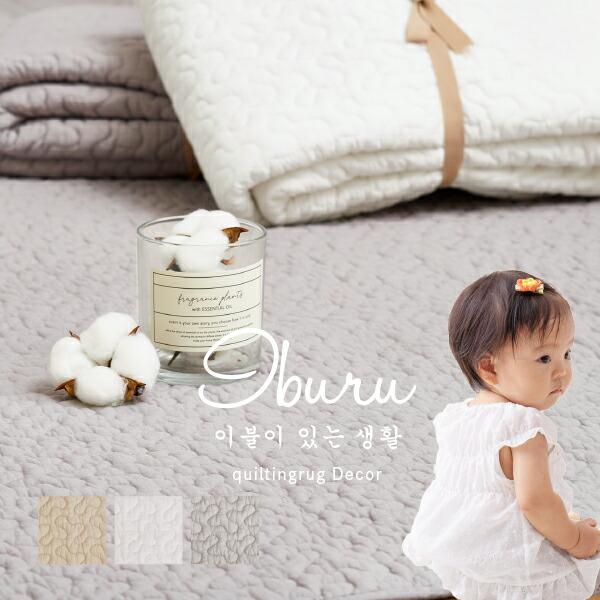 SNSで人気の韓国のおふとん「イブル」そんなイブルをもっと手軽に機能的に!裏にすべり止め加工を施しているので安心。またウォッシャブルなのでリビング・子ども部屋・赤ちゃんのプレイマットなど、清潔に安心して使えます。優しいカラーで、様々な場面で使いやすいサラッとした手触りの優しい1枚。ホットカーペットや床暖房にも対応でオールシーズン使えます。