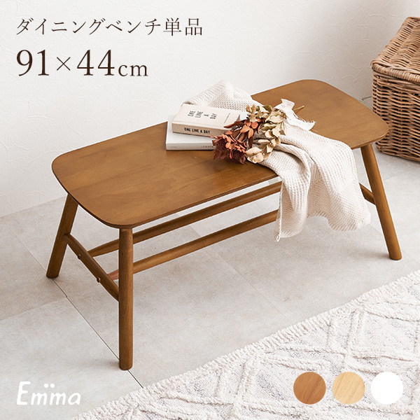 ダイニングベンチ ベンチ 2人掛け ソファ 木製 ダイニング チェア 北欧 チェアー おしゃれ 椅子 2人 白 収納付 棚付き 幅91 コンパクト 食卓 玄関 エマ