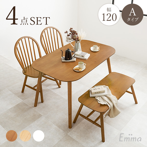 ダイニングセット 4人 ダイニングテーブルセット 4人用 ダイニング テーブル セット 白 机 おしゃれ 北欧 ウィンザーチェア ベンチ 角 四角 4点 幅120 エマ