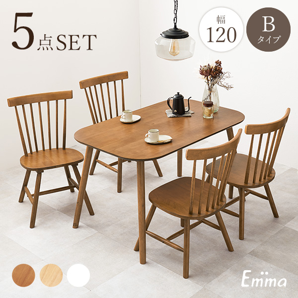ダイニングセット 4人 ダイニングテーブルセット 4人用 ダイニング テーブル セット 白 机 おしゃれ 北欧 ウィンザーチェア 角 四角 5点 幅120 エマ