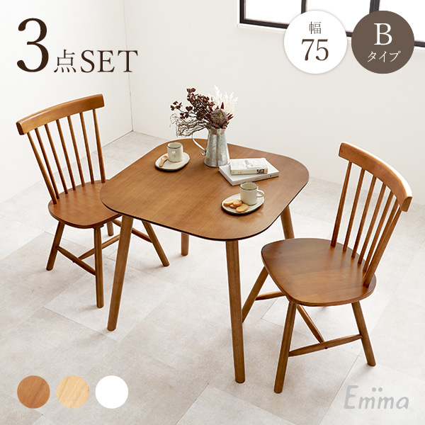 ダイニングセット 2人 ダイニングテーブルセット 2人用 ダイニング テーブル セット 白 机 おしゃれ 北欧 ウィンザーチェア 角 四角 3点 幅75 エマ