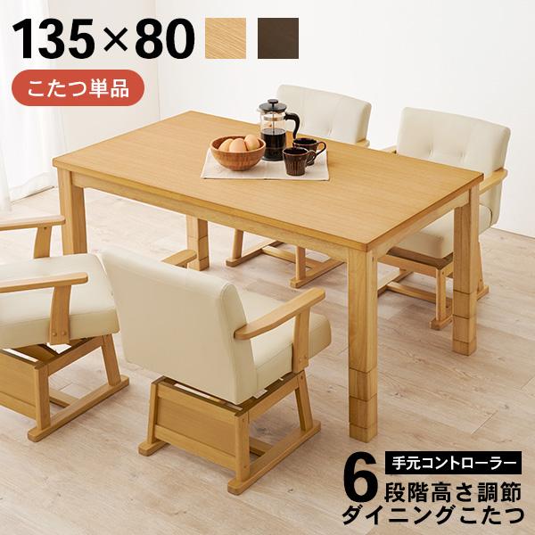 こたつ ハイタイプ 135 長方形 ダイニングこたつテーブル ダイニングこたつ 高さ調節 6段階 こたつ単品 Minka ミンカ