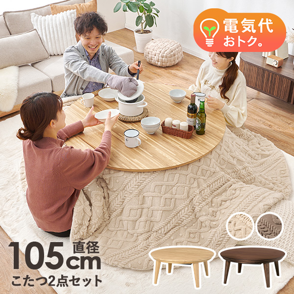 こたつ こたつテーブル こたつセット 直径105cm こたつ布団セット 円形 おしゃれ ナチュラル 円卓 丸い 北欧 省エネ 木目 ウォルナット クライス モクモク