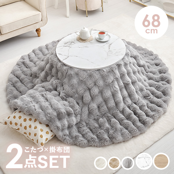こたつ こたつセット 1人用 丸型 こたつ布団 こたつテーブル おしゃれ 円形 一人用 洗える コタツ 炬燵 白 大理石柄 木目調 姫系 かわいい アイナ ルナ