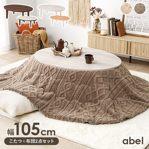 こたつ テーブル こたつセット こたつ布団 一人用 楕円形 こたつテーブル 1人用 かわいい 木目 ホワイト ブラウン 幅105 アベル モクモク