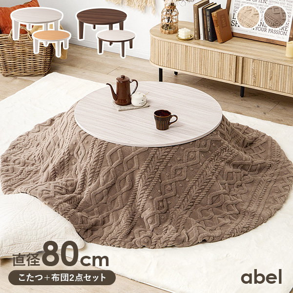 こたつ テーブル こたつセット こたつ布団 一人用 丸形 こたつテーブル 1人用 円形 かわいい 木目 ホワイト ブラウン 幅80 アベル モクモク