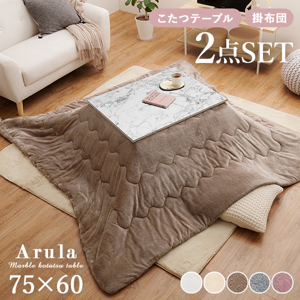 こたつ こたつセット 1人用 長方形 こたつ布団 こたつテーブル おしゃれ 一人用 洗える コタツ 炬燵 白 大理石柄 姫系 かわいい アルラ メレンゲ