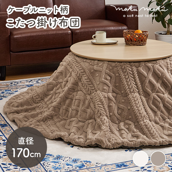 こたつ布団 円形 フランネル 洗える こたつ コタツ布団 薄掛け 丸型 コンパクト ニット柄 ジャガード 収納 北欧 かわいい おしゃれ モクモク