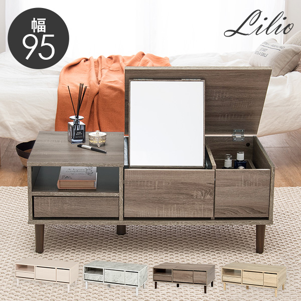 ドレッサー テーブル ドレッサーテーブル 白 おしゃれ 収納 大容量 コンパクト 95cm 子供 ローテーブル デスク 机 コスメテーブル テレワーク リリオ