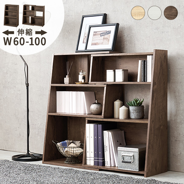 オープンシェルフ 伸縮 ラック 棚 木製 おしゃれ オープンラック 3段 ディスプレイラック 本棚 収納棚 スライド式 幅60 幅100 L字型