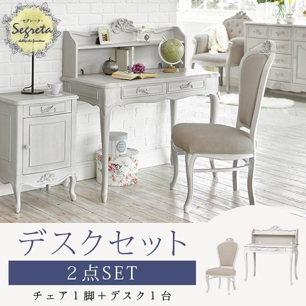 デスク チェアセット おしゃれ 机 椅子 木製 テレワーク 作業台 パソコンデスク PCデスク アンティーク調 姫系 家具 セグレータ 幅100cm