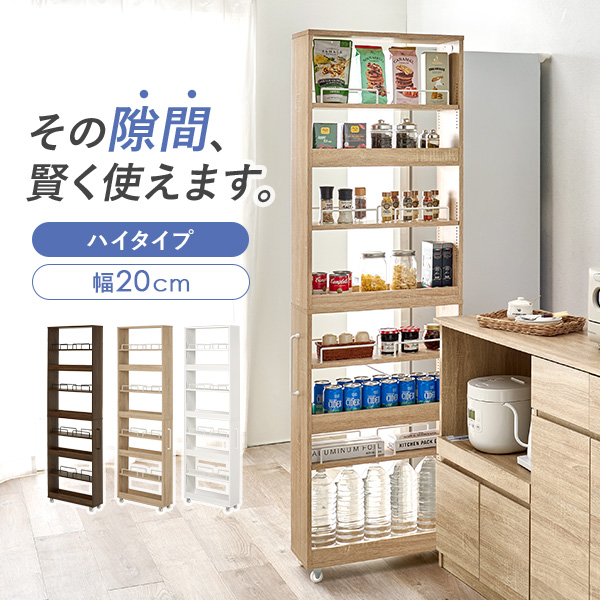 隙間収納 20cm ハイタイプ キッチン 収納 スリム ストッカー 隙間 キッチンラック ランドリーラック 洗面所 棚 オープン 可動棚 キャスター