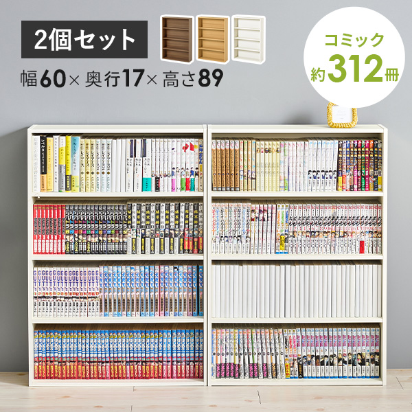 コミック本が約156冊収納できるスリム本棚のお得な2個セット。