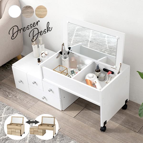 ドレッサーとして使わないときは鏡を閉じて、サイドテーブルやデスクとしてもお使いいただけます