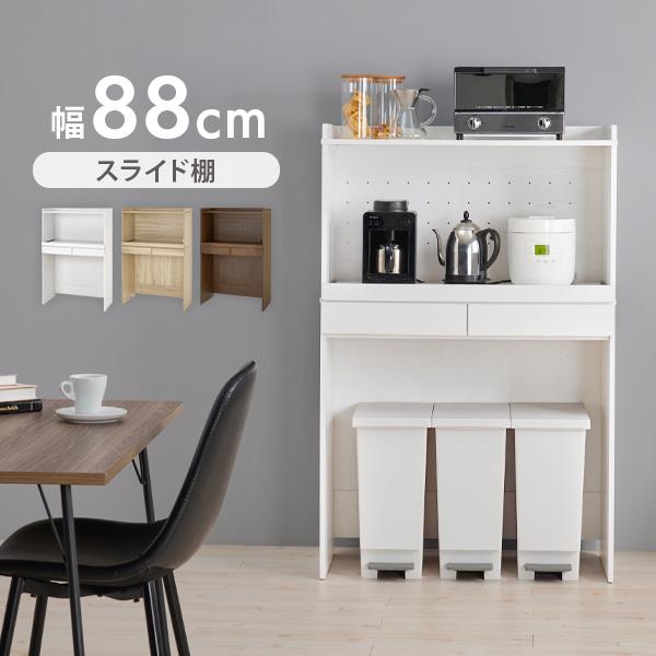 食器棚 収納 レンジ台 ゴミ箱 スリム キッチン収納棚 キッチンラック 棚 トースターラック ごみ箱上ラック キッチン収納 幅88 2段 コンパクト