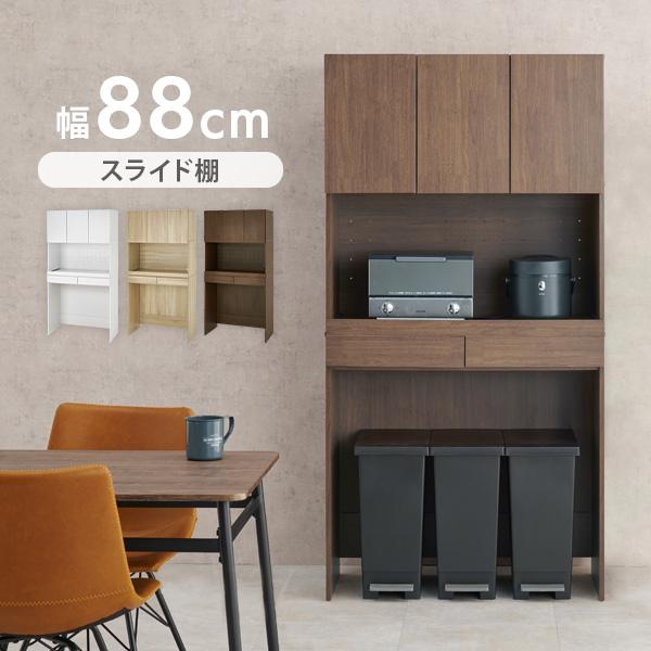 食器棚 収納 レンジ台 ゴミ箱 スリム キッチン収納棚 キッチンラック 棚 トースターラック ごみ箱上ラック キッチン収納 幅88 3段 コンパクト