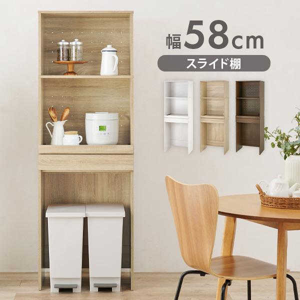 食器棚 収納 レンジ台 ゴミ箱 スリム キッチン収納棚 キッチンラック 棚 トースターラック ごみ箱上ラック キッチン収納 幅58 3段 コンパクト
