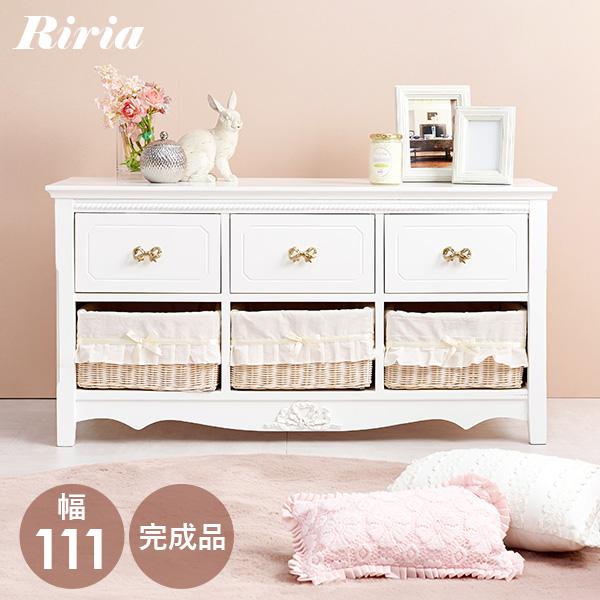 ローチェスト 完成品 幅111cm 収納 白 りぼん リボン かわいい おしゃれ 可愛い アンティーク 姫家具 ロリータ プリンセス 女の子 ホワイト 収納 リリア Riria